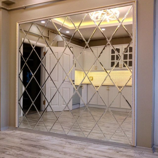 Panneaux de miroir muraux décoratifs de luxe taillés au diamant pour le salon et le design d'intérieur avec couleur noire disponible