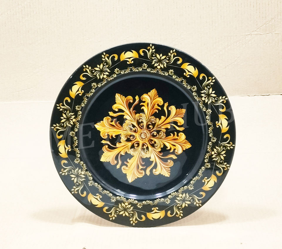 Assiette de présentation décorative en acier inoxydable, ronde, en métal, avec motif floral émaillé, pour la mise en place de la table à manger
