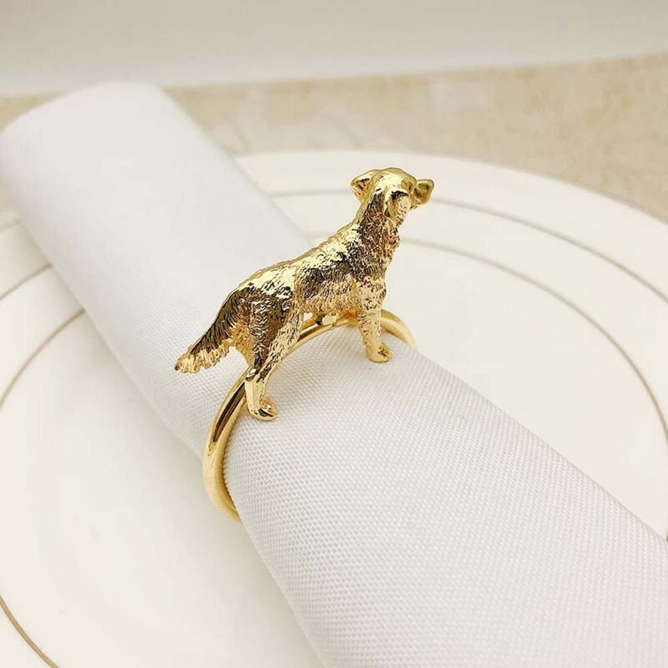 Rond de Serviette Moderne Décoratif en Acier Inoxydable Élégant Rond Doré avec Design de Chien Solide Rond de Serviette de Designer de Qualité Supérieure