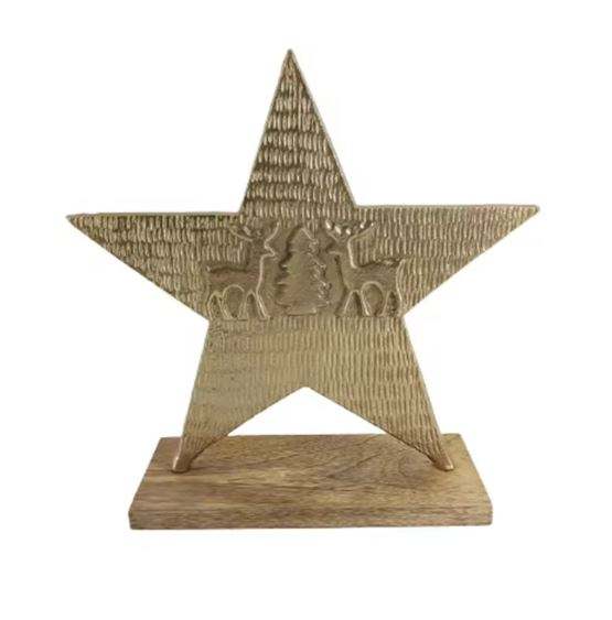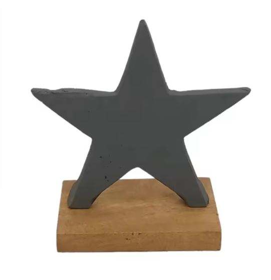 Étoile décorative avec base rectangulaire en bois, couleur grise, pour la décoration de la maison, décoration de table personnalisée faite à la main, aluminium et bois
