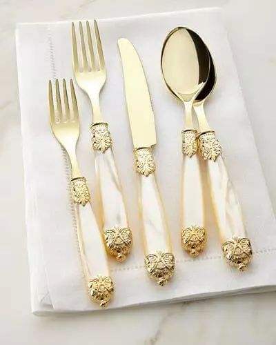 Ensemble de couverts en métal de style décoratif pour événements spéciaux et célébrations, rehaussant la table avec une touche élégante.
