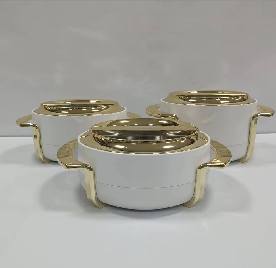Vaisselle décorative, ensemble de casseroles isothermes de 1,8 L, 2,3 L et 2,8 L avec large bord doré et fenêtre en verre