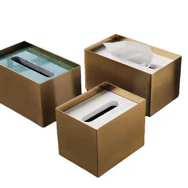 Boîte à mouchoirs décorative, motif rose vintage, support en métal blanc et or avec détails ornés