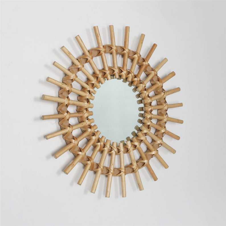 Miroir décoratif traditionnel en rotin tressé de luxe fait main pour chambre d'enfant et usage domestique, fabricant vietnamien
