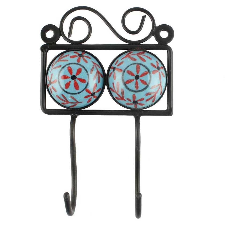 Crochets pour sac à vêtements, carreaux en céramique turquoises décoratives, à motif Floral rond, imperméable, supports muraux, artisanat indien Durable, vente en gros