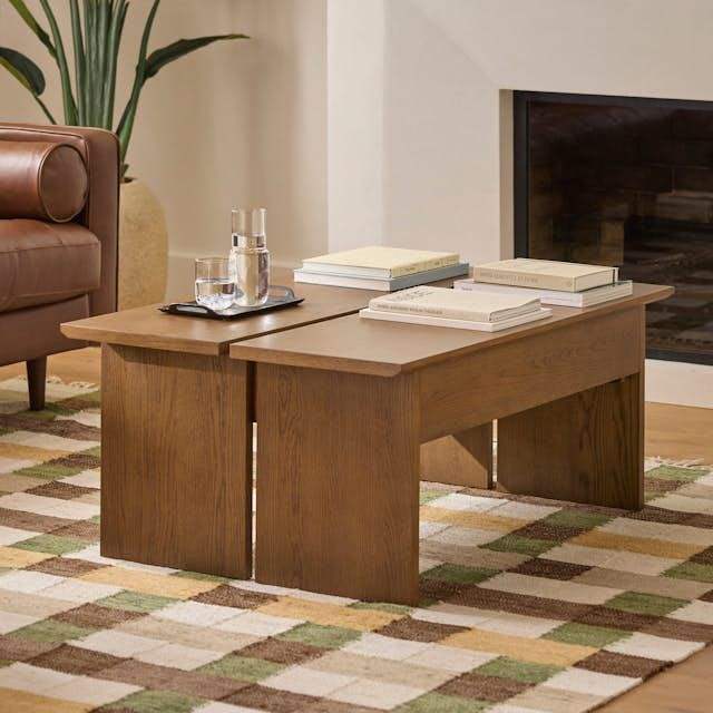 Table basse en bois décorative pour un salon élégant, offrant une surface fonctionnelle et un intérieur esthétique.