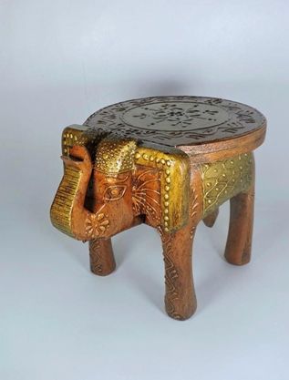Tabouret décoratif en bois en forme d'éléphant, artisanal, écologique, décoration de mariage avec un design art déco traditionnel peint à la main