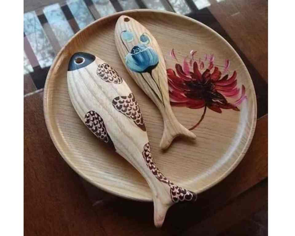 Poisson décoratif en bois fabriqué à la main à partir de bois naturel Poisson en bois suspendu Art pour la décoration intérieure côtière ou rustique