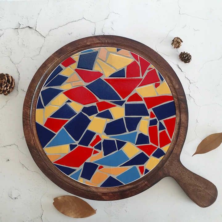 Decorative Wooden Pizza Plate with Printed Design Handcrafted Round Serving Tray for Pizza Desserts and Snacks Durable