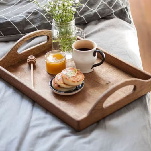 Plateau de service décoratif en bois pour la table de cuisine, pour servir la nourriture, le café, le thé, les collations et la présentation du petit-déjeuner