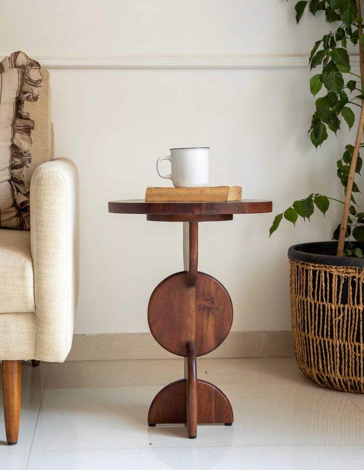 Table d'appoint décorative en bois, rehaussant la décoration du salon et de la chambre, avec un charme naturel du bois et un plateau plat fonctionnel