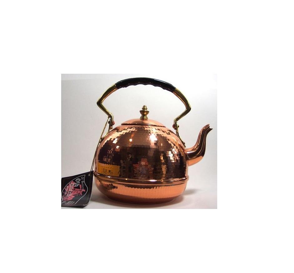 Bouilloire décorative en cuivre avec polissage lisse et détails artisanaux parfaits pour l'intérieur de la cuisine vintage et les cadeaux