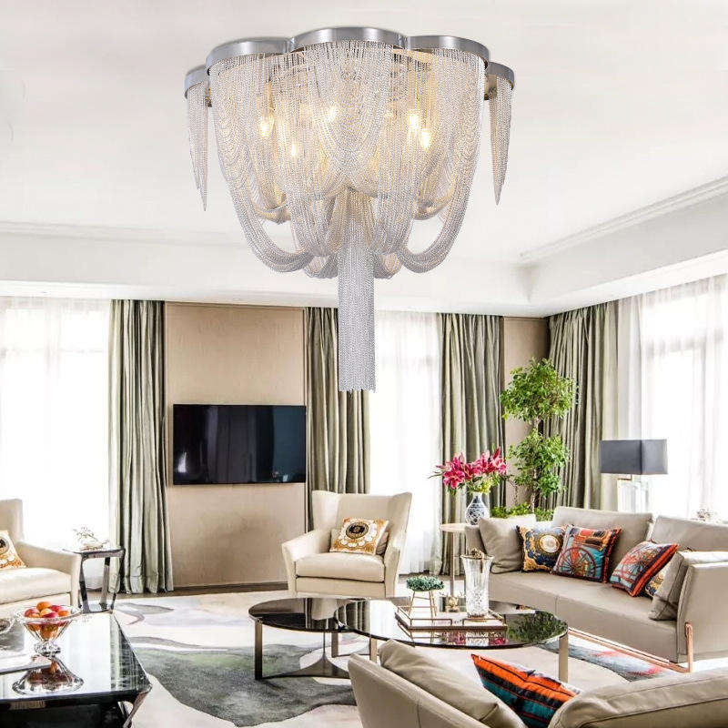 Chaîne créative décorative gland pendentif lumière hôtel plafond salon frange lustre