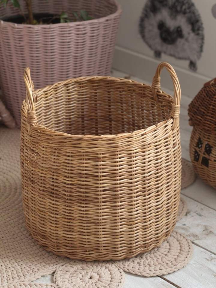 Decorative handwoven rattan basket for kitchen and home storage with durable construction and modern look