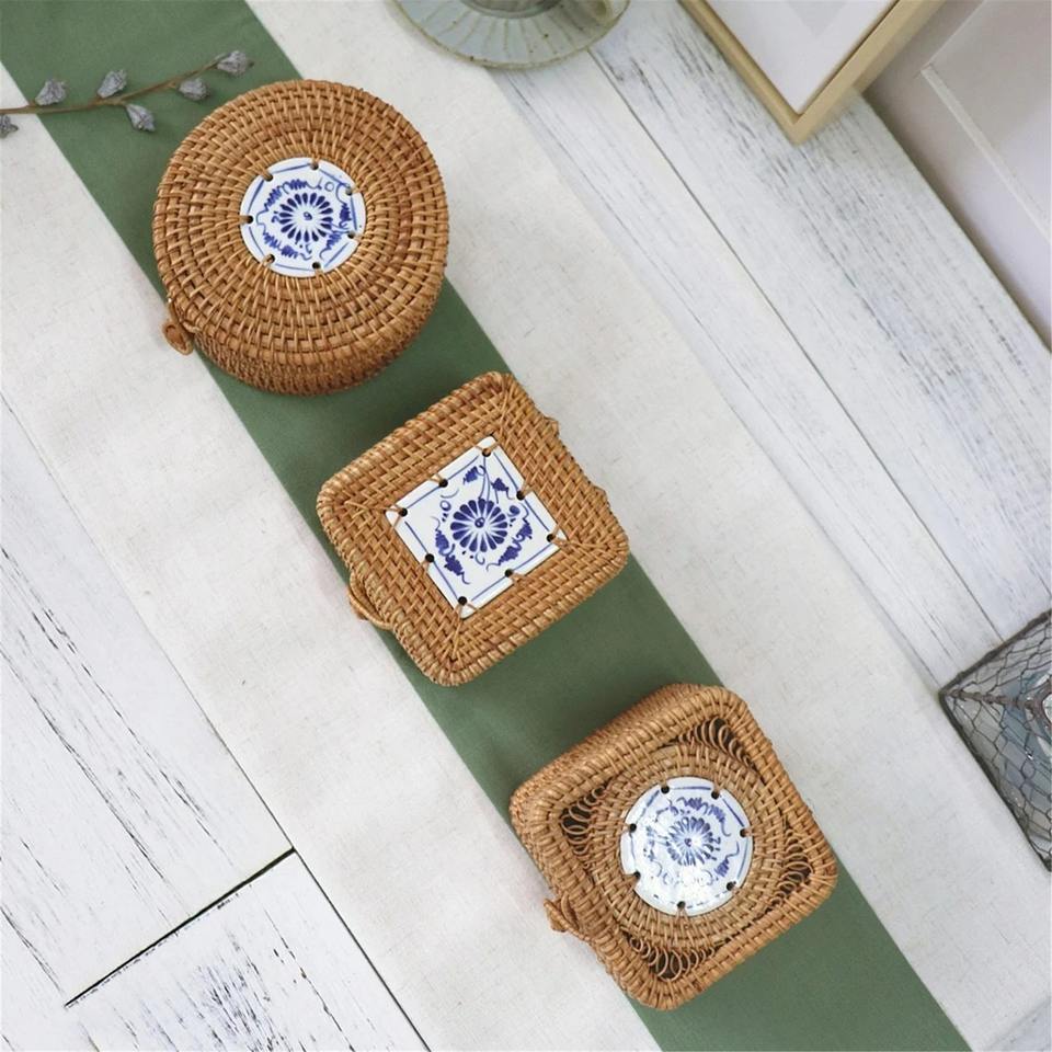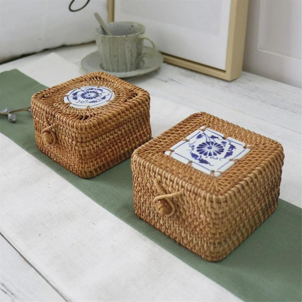 Boîte en rotin décorative avec coussin en céramique, boîtes cadeaux artisanales spéciales pour la décoration de la maison et des mariages