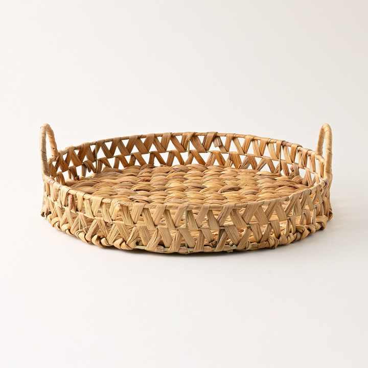 Decorative round water hyacinth trays multi-purpose serving tray for tea snack breakfast in bed