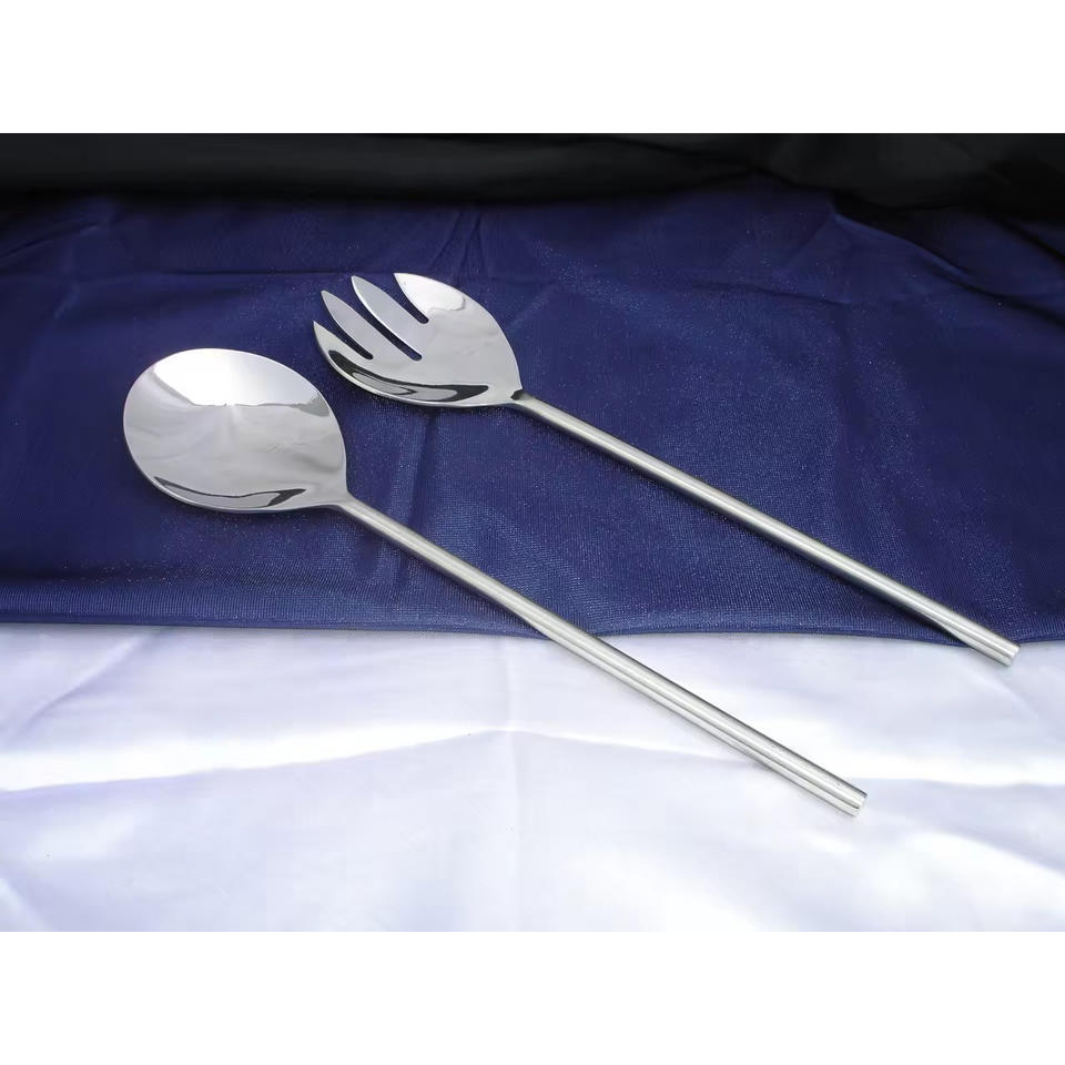 Serveurs à salade décoratifs Poignée design faite à la main Ensemble cuillère et fourchette de service à salade design poli argenté Ensemble acier miroir mariage