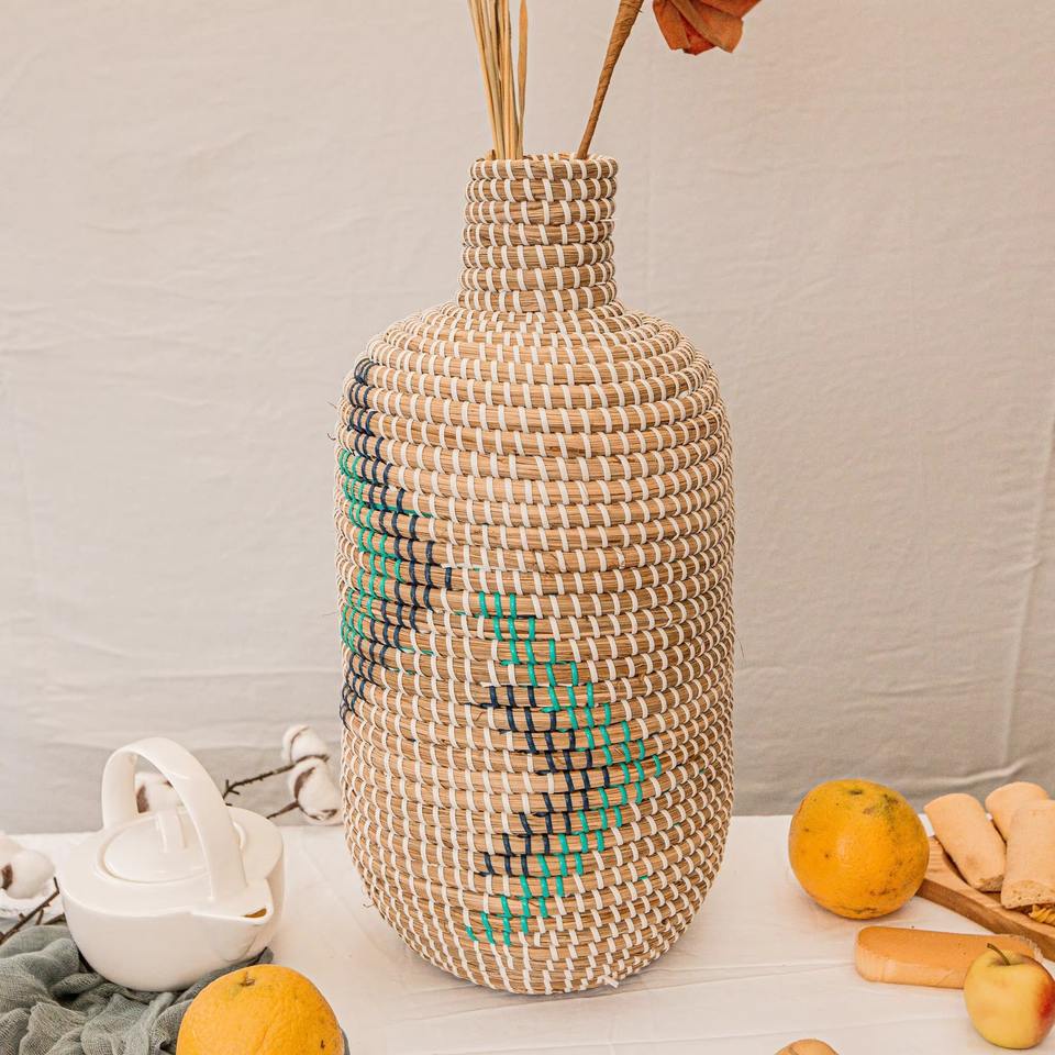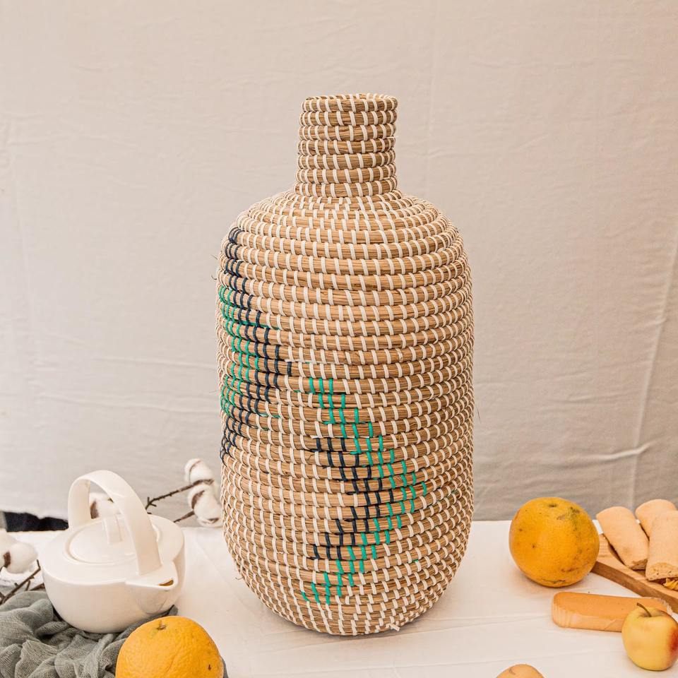Size: D7,1 x H18 inch:Decorative water bottle made from seagrass