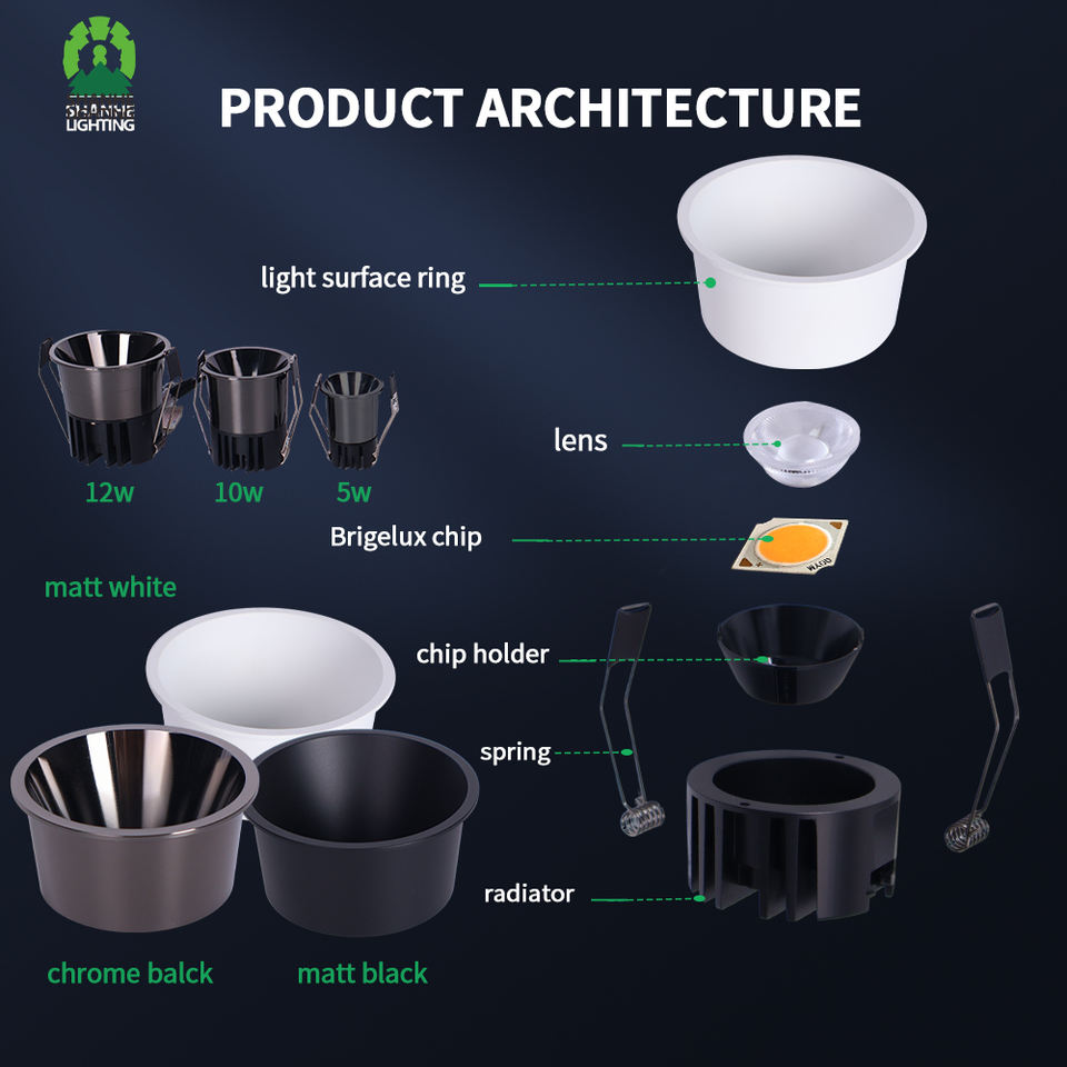 Spot LED COB anti-éblouissement profond, puce Bridgelux, RA98, spectre complet, encastré, 7W 10W 12W pour l'éclairage domestique et commercial