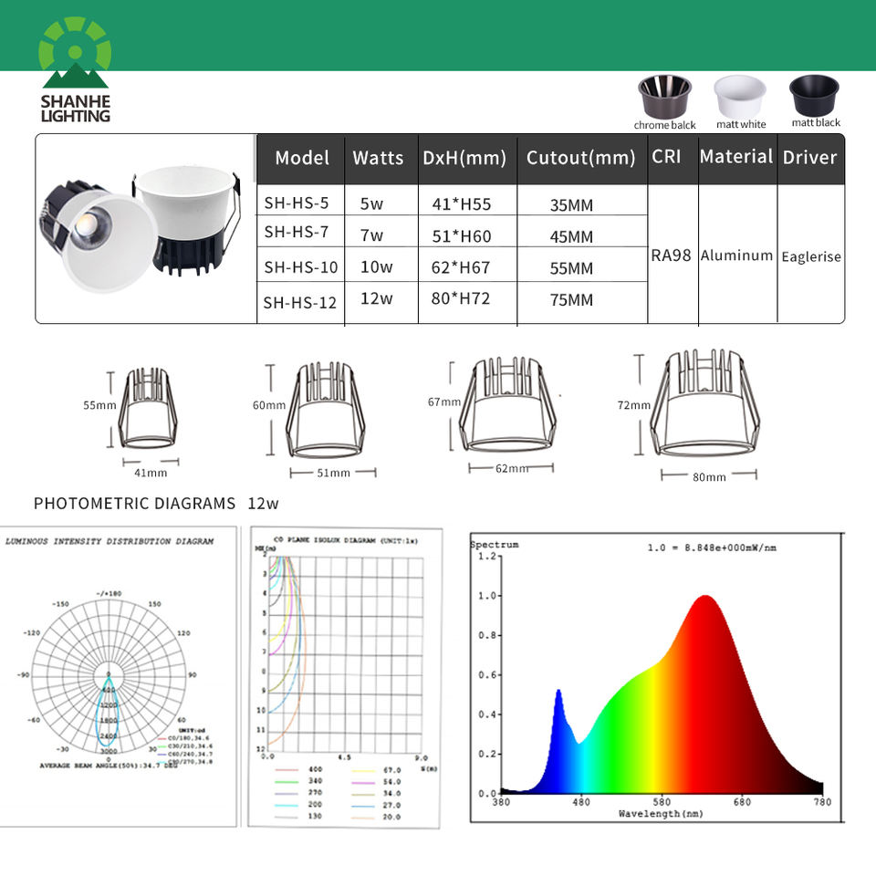 5W, 7W, 10W, 12W