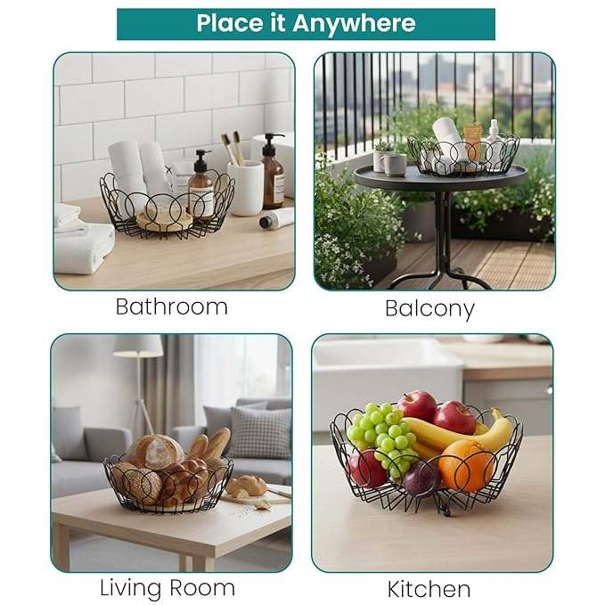 Panier de rangement en métal noir profond, organisateur en maille robuste pour étagère