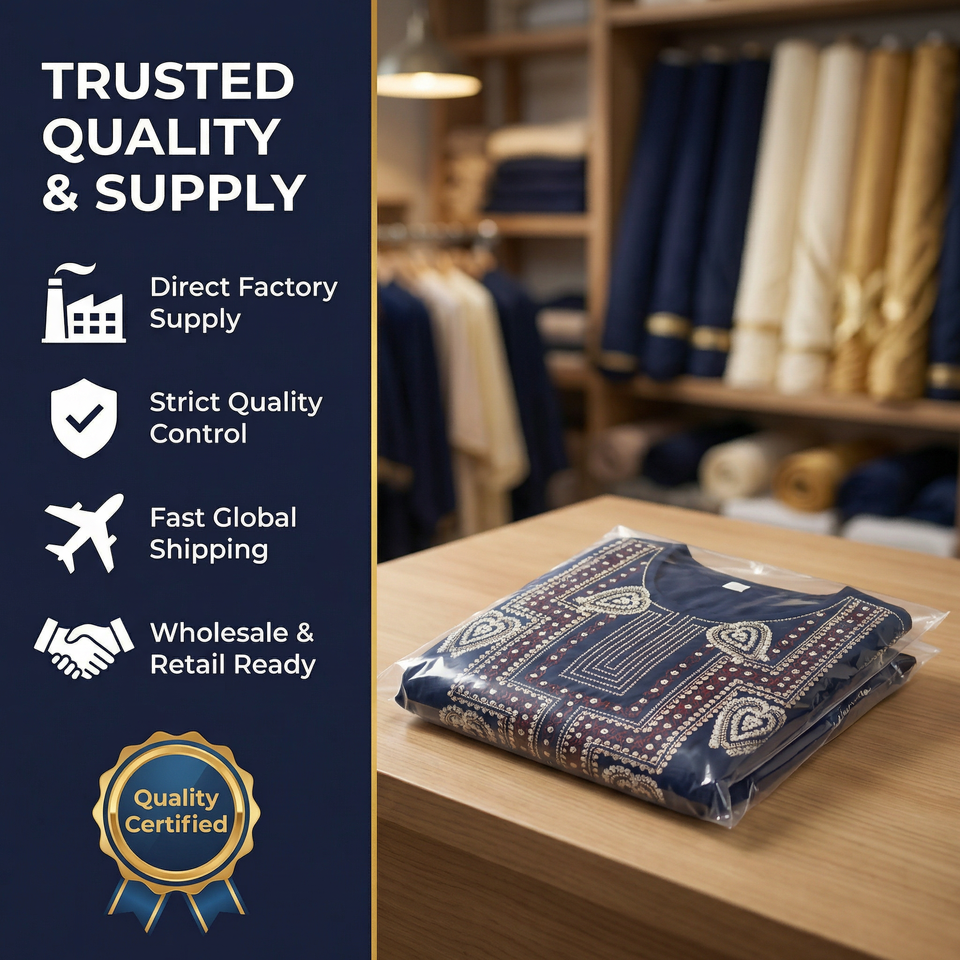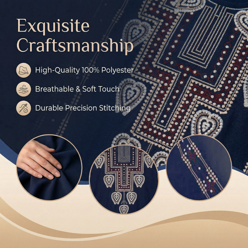 Robe musulmane imprimée bleu profond pour le marché du patrimoine