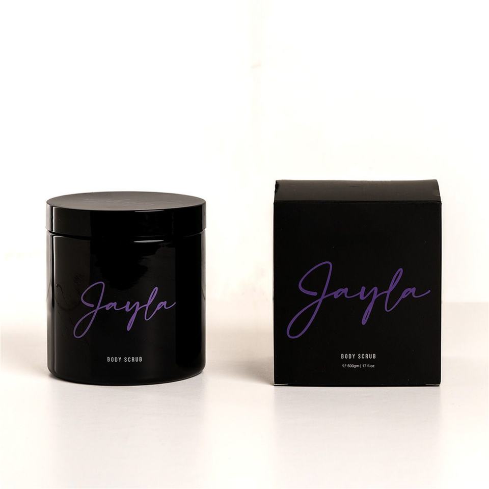 Gommage corporel exfoliant profond, pot blanc avec couvercle en aluminium, étiquette personnalisée imprimée, boîte rigide et emballage en cellophane pour la vente au détail