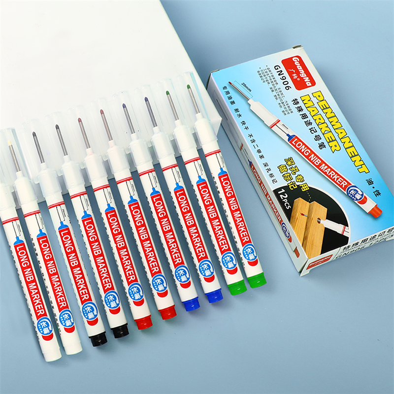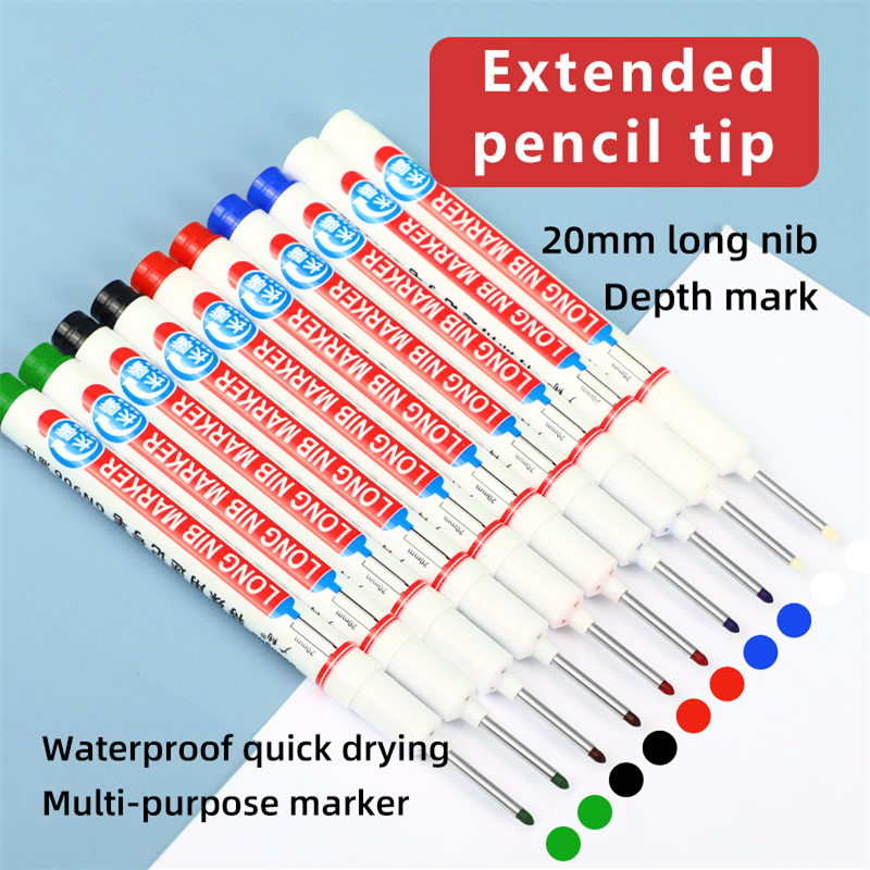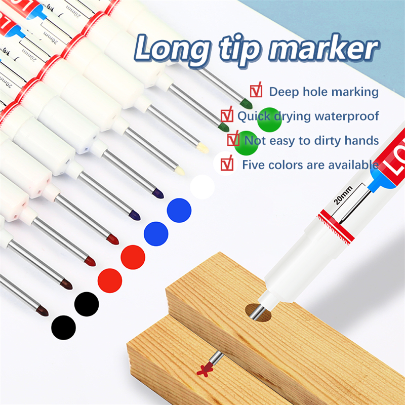 Marqueur pour trous profonds, pointe longue de 20 mm, encre permanente, utilisation sur tissu, conception à tête longue pour le travail du bois