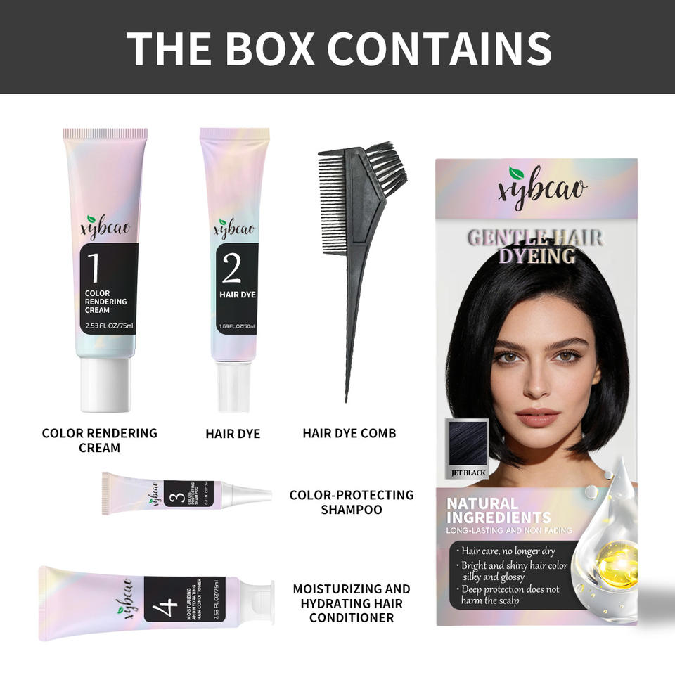 Crème Colorante Capillaire Naturelle Noir Intense avec Fo-Ti, Reishi et Aloe – Soin Doux aux Herbes, Couverture Forte, Couleur Longue Durée – Kit Usine
