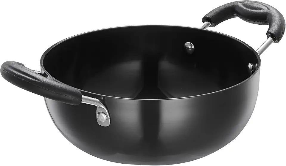 Casserole en granit antiadhésive profonde avec couvercle en verre, poignée en bois, casserole en aluminium pour cuisinière à induction et à gaz