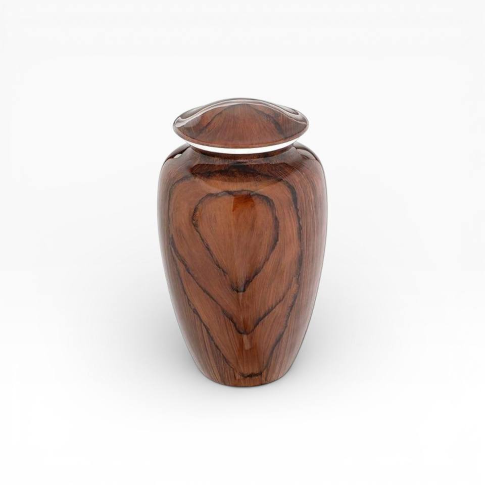 Urne commémorative bleu océan profond avec finition polie et bandes florales argentées pour une commémoration élégante