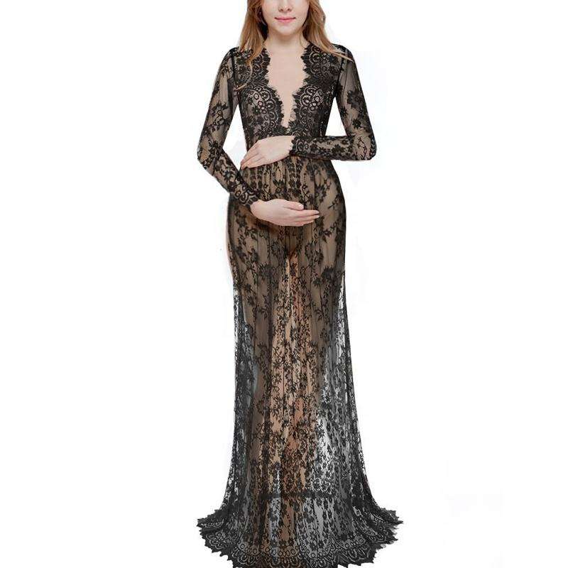 Robe de maternité en dentelle longue en V profond pour Photoshoot robe de maternité pour bébé douche femmes enceintes robe de soirée