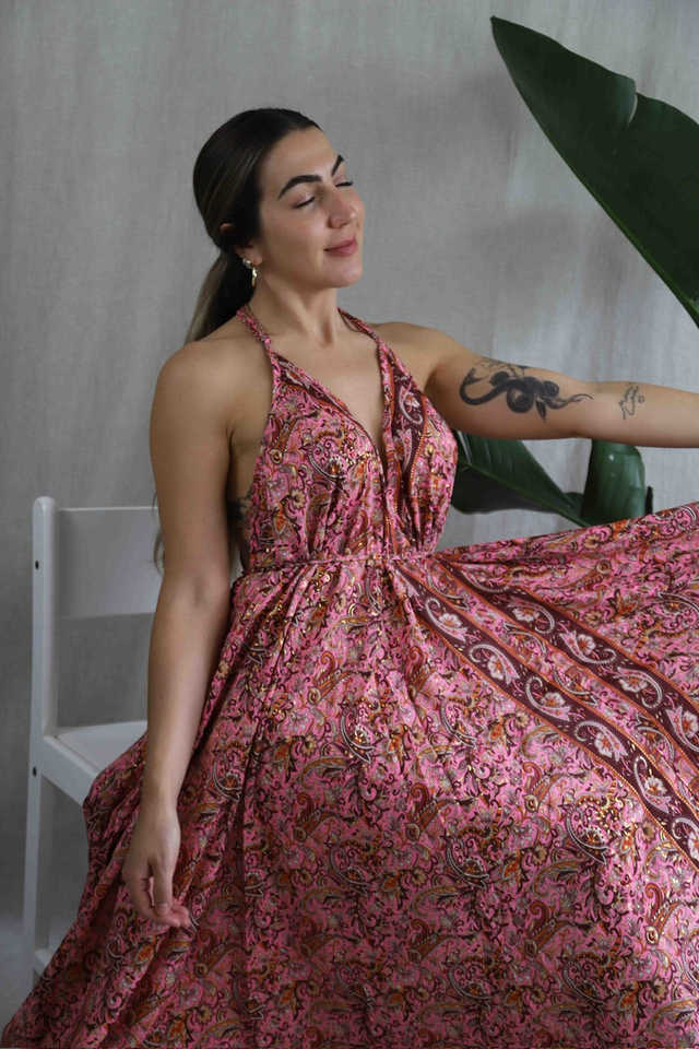 Deep V-NECK Plunge Women Sleeveless Dress Backless Maxi Dress Beachwear S-XL Women's Summer Boho Dress Floral Print Maxi Dress