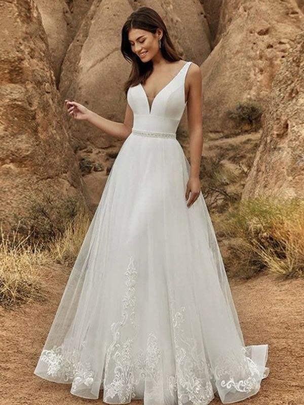 Robe de mariée en combinaison longue à col en V profond avec jupe amovible, robe de mariée en dentelle et tulle à dos nu, pantalon sur mesure