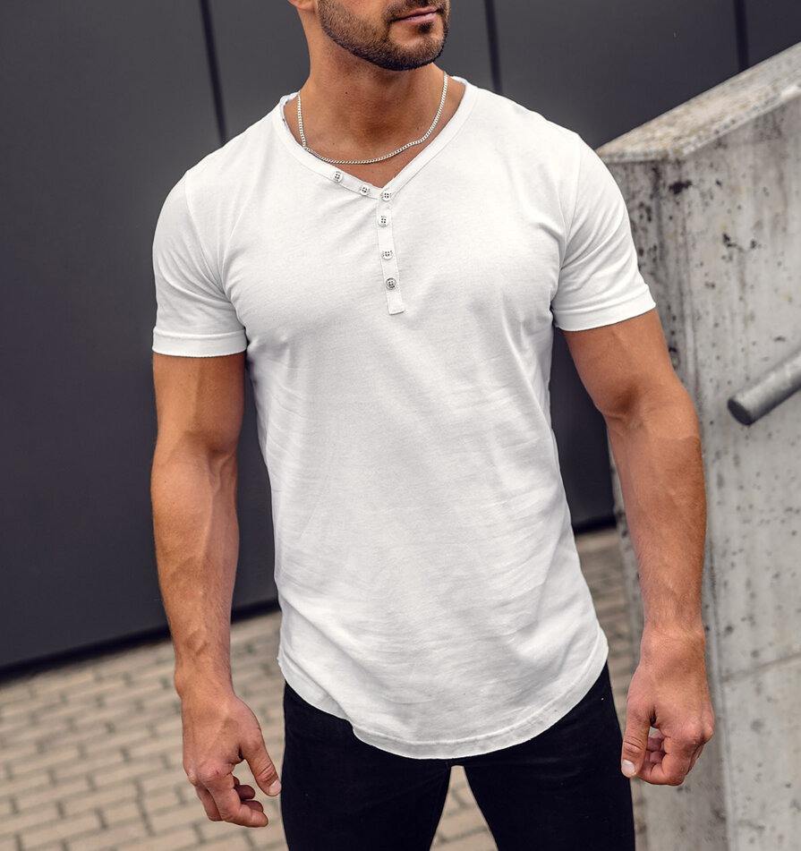T-shirt à col en V profond pour hommes T-shirts à séchage rapide coton polyester manches courtes respirant en gros couleur personnalisée personnalisée
