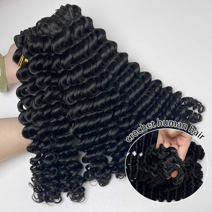 Extensions de cheveux humains en crochet sans nœuds à ondulation profonde, pré-divisées, en vrac pour le tressage, 100g/lot, tresses bohèmes invisibles