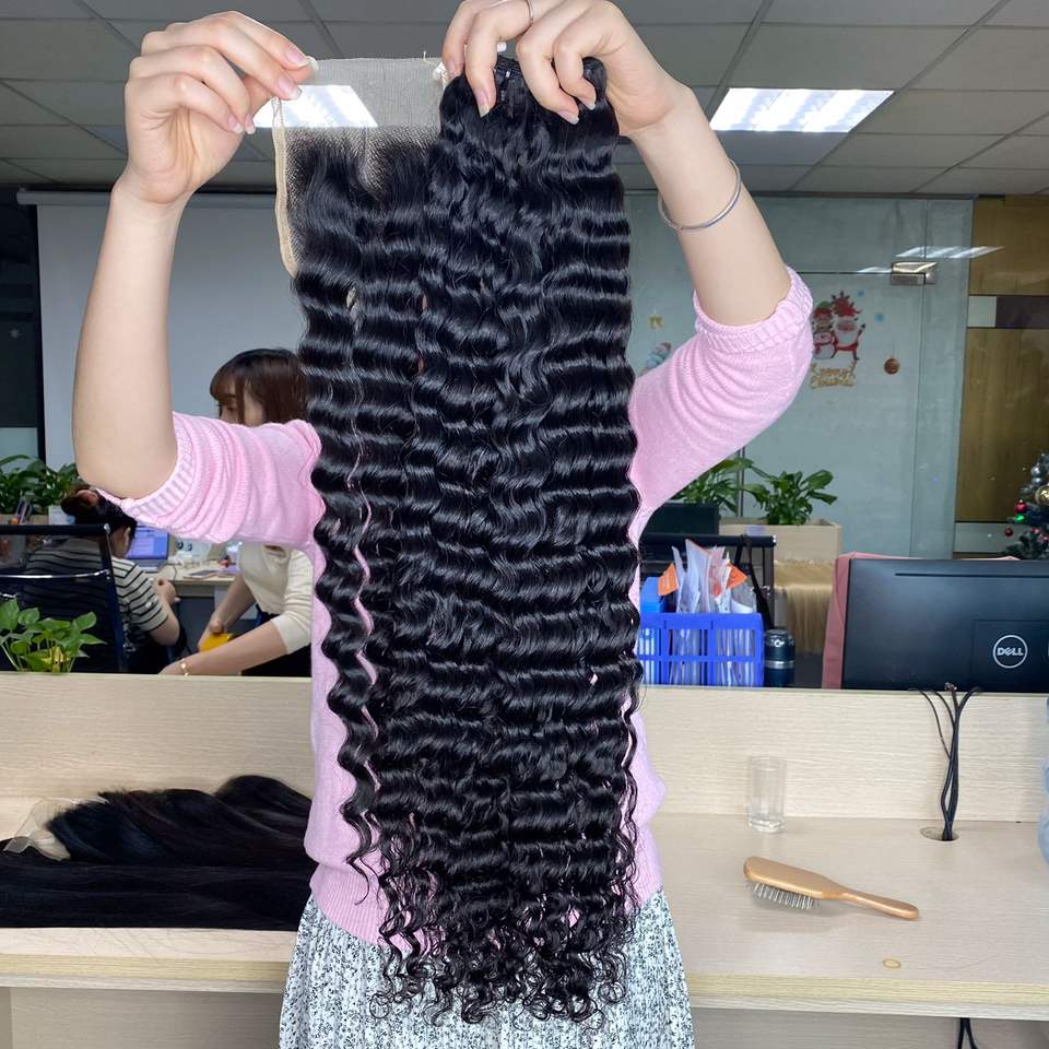 Cheveux ondulés profonds Extensions de cheveux humains Cheveux vietnamiens bruts vierges super doublement étirés