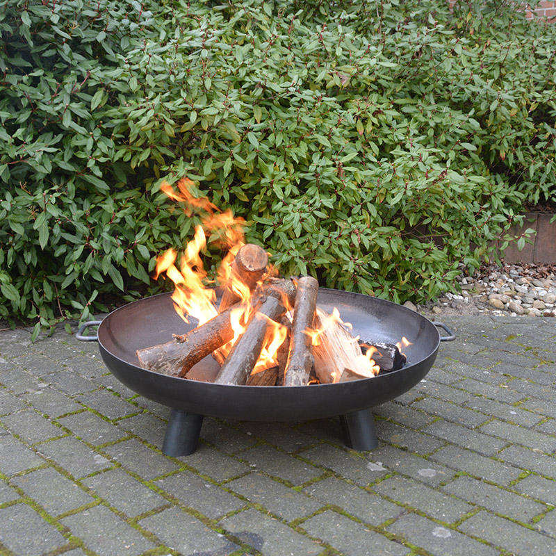 Foyer extérieur rond en métal profond pour le chauffage du patio, fabriqué en acier massif pour un effet chauffant puissant