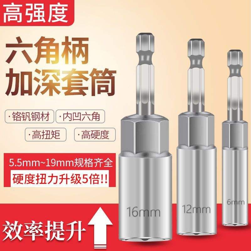 Douille de clé à chocs électrique allongée et épaissie, douille hexagonale interne épaissie, embout de tournevis à tête cylindrique, magnétique puissant, pour perceuse électrique