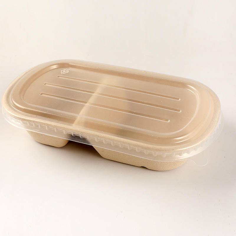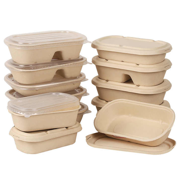 Boîte à lunch en paille de blé dégradable Emballage écologique Livraison d'aliments à emporter Boîtes à gâteaux jetables Logo personnalisé Brun XL
