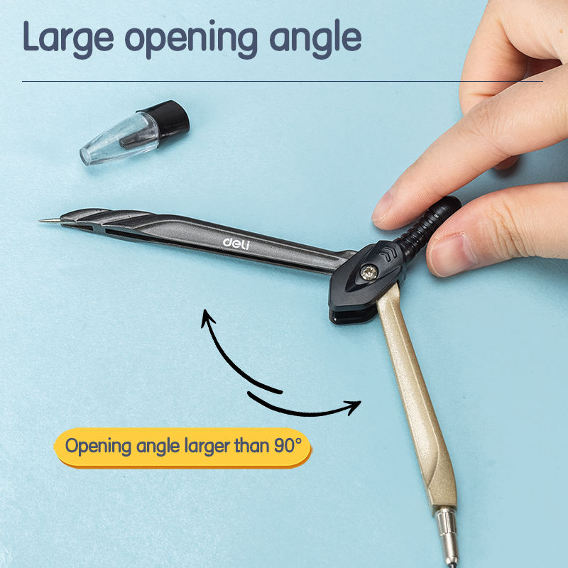 Deli EG20502 Boussole avec ensemble de dessin de mine de crayon Boîte PS de haute précision à glissière lisse pour un rangement facile