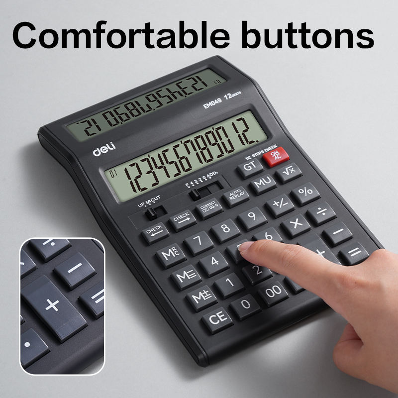 Deli EM049 Calculatrice haute performance à double écran à 12 chiffres, un ordinateur dédié au travail de bureau et à la comptabilité des étudiants