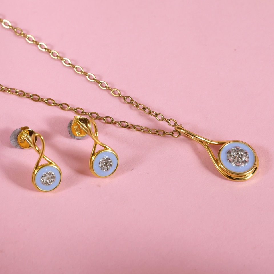 Ensemble de pendentifs délicats en or fin 18 carats pour femmes, bijoux de créateur traditionnels avec boucles d'oreilles assorties pour mariages et fêtes