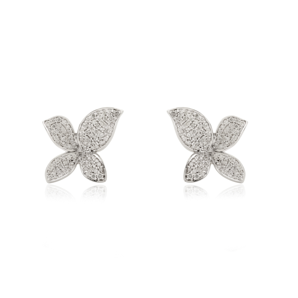 Délicat belle étincelle 100% diamant naturel quatre pétales boucles d'oreilles à la main 18K solide or blanc fête porter des bijoux