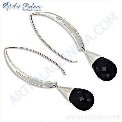 Delicate Black Onyx Beads Silver Fashion Hoop Earrings