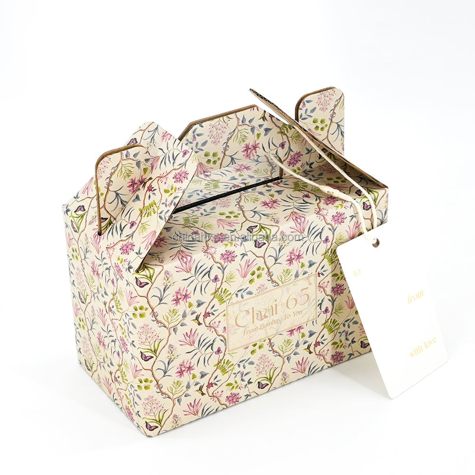 Boîte pliante ondulée à poignée délicate, boîte cadeau avec impression intégrale et pelliculage mat, avec étiquette de marque