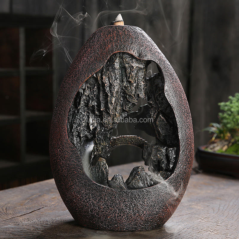 Brûleur d'encens à reflux de style cascade avec scène de montagne et de rivière délicate à vendre