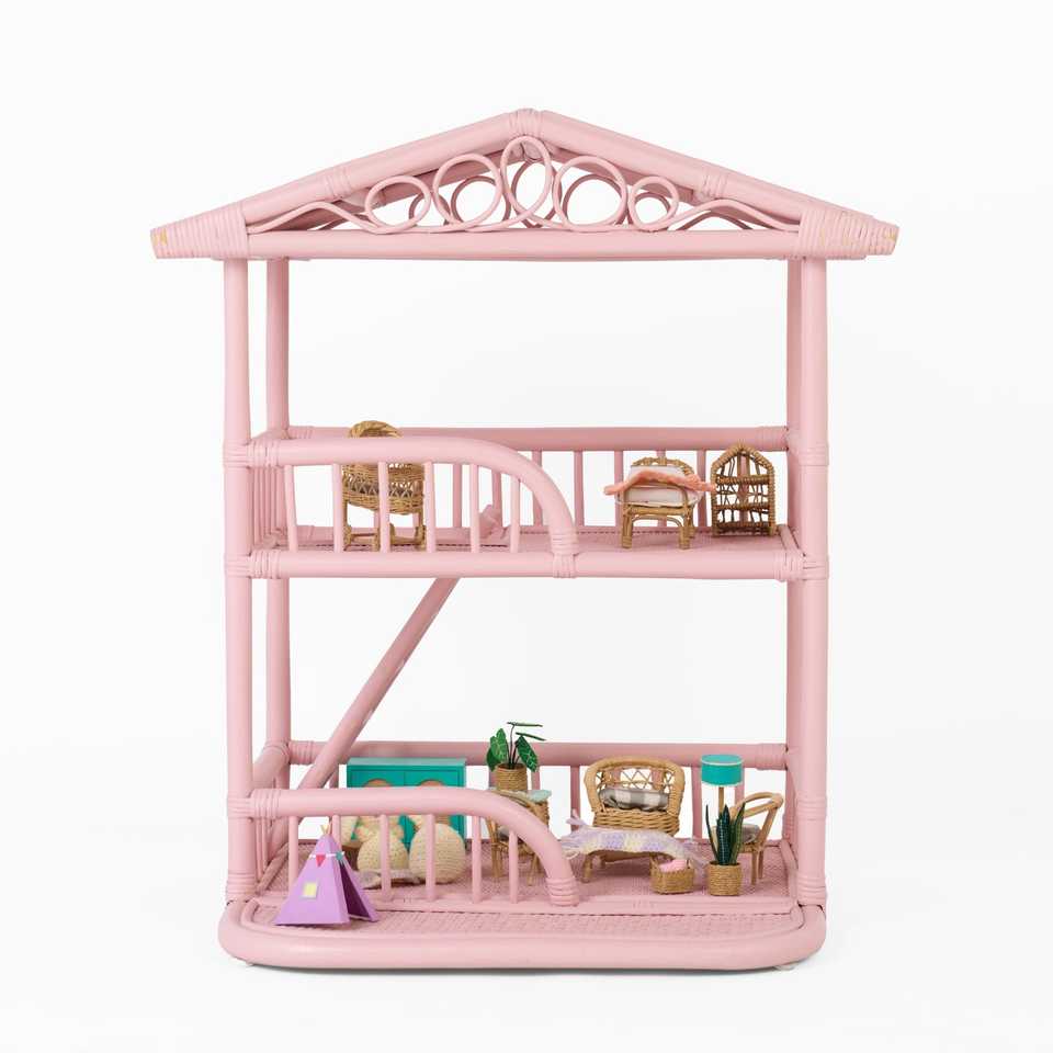 Maison de poupée en rotin rose délicat, maison de jeu décorative, maison de jeu imaginative pour enfants, salle de jeux créative, jeu d'imitation