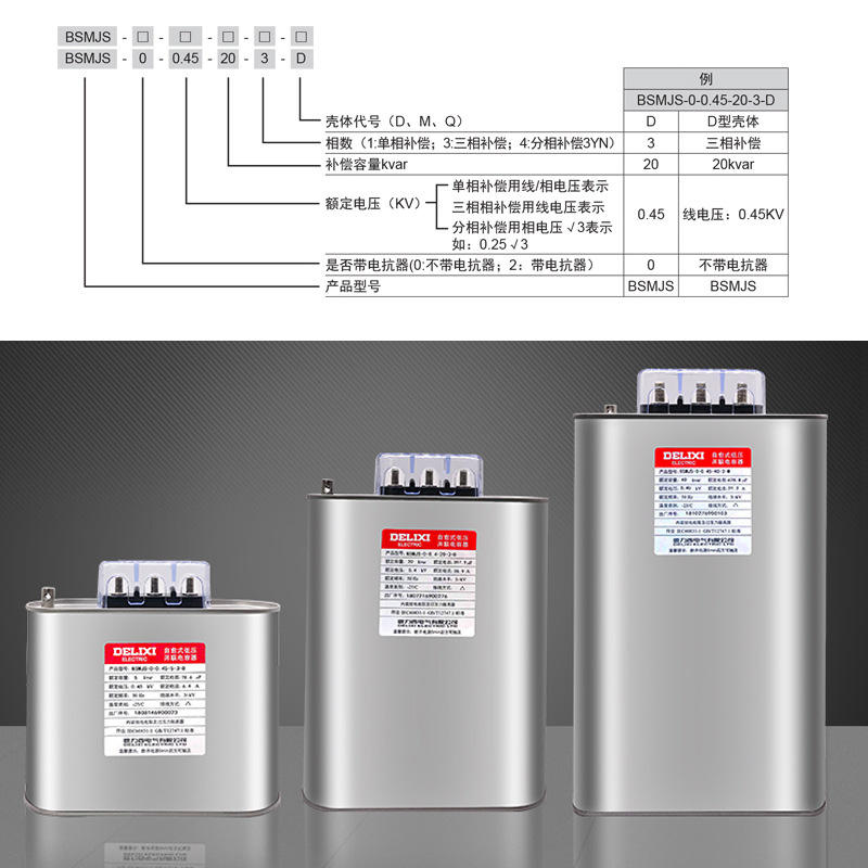 Réacteur de condensateur basse tension Delixi BSMJS-0.45-40-3-M 450V 40kvar pour la compensation de puissance dans un coffret