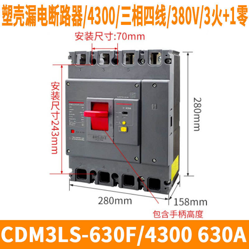 Disjoncteur différentiel triphasé quatre fils Delixi CDM3LS-630F/4300 630A 800A 4P